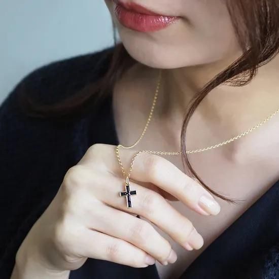 大人の好奇心を刺激する【CURIOSITY CROSS COLLECTION】よりブラックサファイヤをセッティングしたクロスネックレスが登場。ブラックサファイヤは一見すると黒色に見えますが、強い光にかざすと黒く見えるほど深いブルーカラーをしています。輝きの強いブリリアントカットに加えて、透明感を愉しめるバゲットカットを組み合わせることで、奥行きのある独特の煌めきを最大限に引き出しました。日常使いしやすいサイズ感で、シーンを問わずお使いいただけるのでギフトやペアジュエリーにもおすすめです。