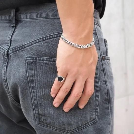 目を詰めて編立た上質なグルメットチェーンを使用したチェーンブレスレット。シンプルでタイムレスなデザインなので、ドレス・カジュアル問わずコーディネートしやすいアイテムです。一般的なシルバーアクセサリーとは異なり、通常ホワイトゴールドのフィニッシュにもちいるロジウムコーティングをほどこした、まさしくファインジュエリーと呼べる高級感ある仕上がりの上質なシルバーコレクションです。