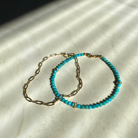 ターコイズは明るい未来へ導くポジティブなパワーを持つとされ、人生の旅を支えるお守りとして世界中で愛されているパワーストーンの1つ。そのような歴史的な背景からターコイズは「贈り物の石」とも知られ、大切な人に贈ると絆が深まると言い伝えられています。